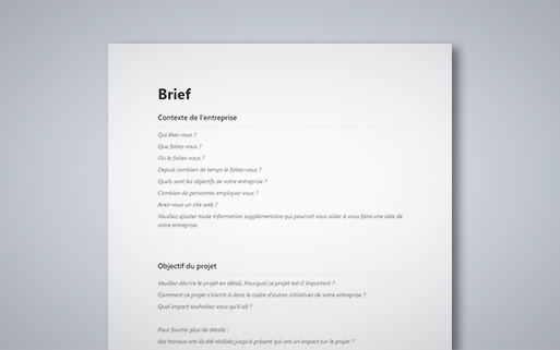 Questionnaire de réflexion pour votre client.